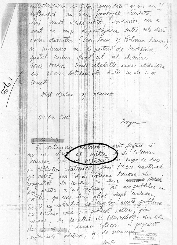 Pentru examenul de grad, Claudia Coteanu avea nevoie să obţină un punctaj cât mai mare, iar acest lucru era posibil dacă doamna învăţătoare ar fi avut publicate şi niscaiva cărţi. Cum nu exista nicio carte publicată, iar să scrii o carte nu este chiar uşor, Coteanu s-a gândit să apeleze la mai vechile ei cunoştinţe (nu didactice desigur) şi să înregistreze la învăţământ o carte care nu exista în realitate înregistrată le Biblioteca Naţională neavând în consecinţă număr ISBN (foto 2).