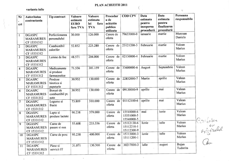 Astfel că, în luna iulie de exemplu,când cei mai mulţi dintre producători nu reuşeau să-şi vândă varza nici măcar cu 0,50 bani/kg, D.G.A.S.P. Maramureş achiziţiona de la S.C.Sessler SRL, conform comenzii nr.265/25.07.2011, varză cu 1, 24 lei/kg, ca să nu mai vorbim de roşii care în luna august erau cumpărate la preţul de 3,02 lei/kg când în piaţă acelaşi produs se vindea de regulă cu 1leu/kg.