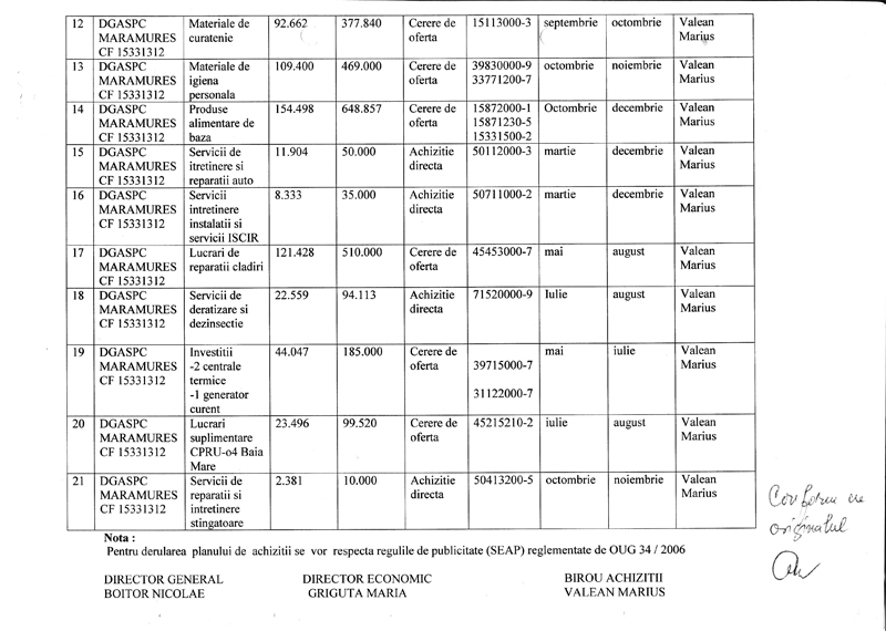 Ouăle lui Nicolae Boitor, directorul D.G.A.S.P. Maramureş, achiziţionate prin contractul nr. 17802/15.07.2011 încheiat între S.C. Carmangeria Dalia SRL şi D.G.A.S.P. Maramureş, sunt deosebit de scumpe, ajungând conform documentelor direcţiei la preţul de 0,59 bani/bucată (fără TVA), adică aproape şase mii de lei vechi. Asta în timp ce, în cazul vânzării cu amănuntul un ou nu depăşeşte 0,35 bani/bucată(cu TVA). Deci, în loc să se plătească 41 595 lei, toate ouăle cumpărate în şase luni ( 21.07.2011 – 20.01.2011) ar fi suficienţi doar 20 500 lei, adică cu vreo 200 de milioane de lei vechi mai puţin.